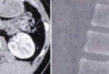 男,16岁。腰背部疼痛1周入院。患者于1周前无明显诱因出现腰部隐痛、钝痛,持续性、渐加重。无发热.咳嗽咳痰。无腹痛腹泻。无肢体麻木及大小便障碍。既往体健,家族史无特殊。人院查体:生命体征正常。专科检查:脊柱呈生理性弯曲,T12~L2棘突及右旁明显压痛、叩痛,T12~L2棘突右旁扪及一鸡蛋大小包块,压痛,质硬,固定。余正常。入院平扫及增强CT示:T12~L1段右侧竖脊肌内软骨类肿瘤可能(图1a~1c)。积极准备在复合全麻下行肿瘤切除术。术中见:T12~L2水平右侧竖脊肌内鸡蛋大小椭圆形肿块。质硬,包膜完整,表面光滑,与周围组织界线清楚,T12~L2棘突、椎板和关节突无骨质破坏。切除肿块标本送病检。病理切片示骨软骨瘤伴钙化CT扫描永T11~L2水平右侧竖脊肌内不规则形稍低密度肿块,最大截面约3.3cm×3.0cm.CT值稍低于肌肉组织,其内见大量环形、条形及团块状钙化。肿块周围界限尚清,可见包膜形成,邻近椎体及附件未见骨质破坏。增强软组织肿块轻度强化。图1a为CT增强皮质期、轴位。图1b,1c为CT三维重建。图1d病理切片见典型的骨软骨瘤镜下改变(HE)